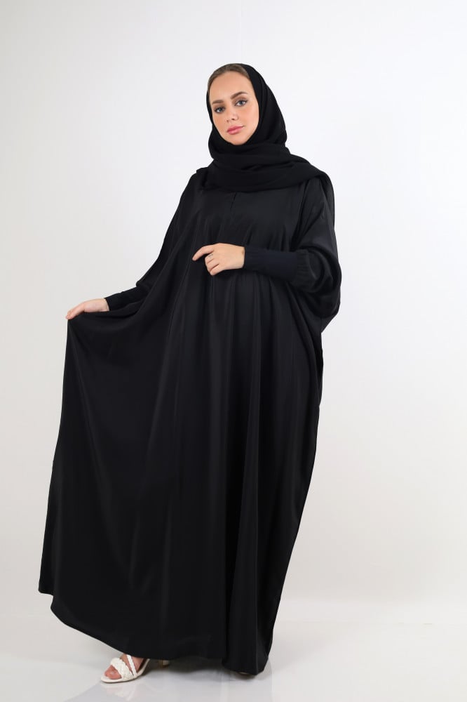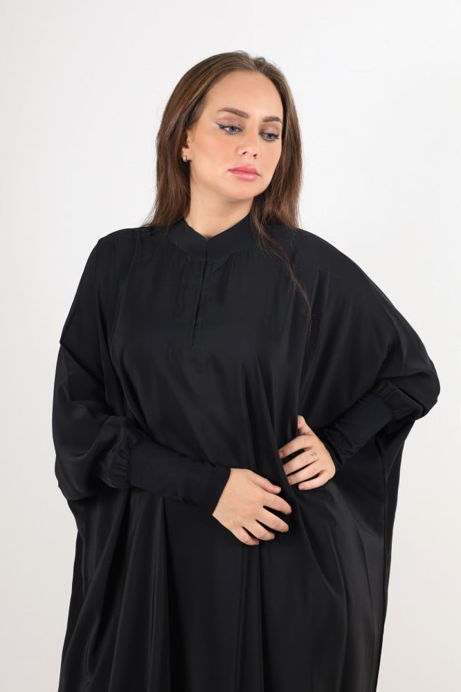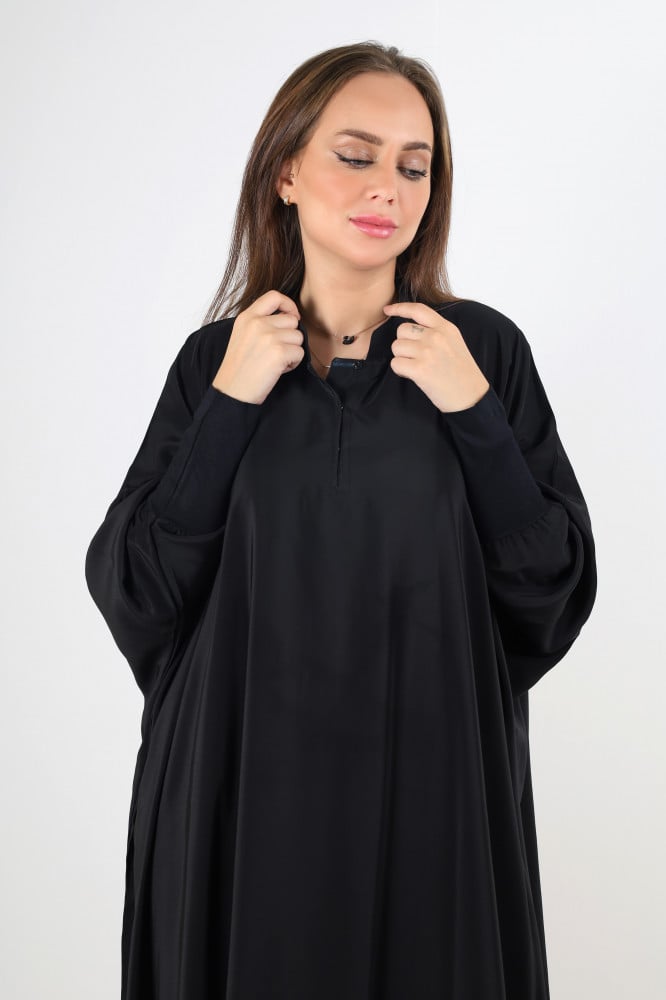 عباية مميزة بقماشها الخفيف الحرير وبتصميمها الفريد بياقة رسمية وقصة أكمام استرتش أنيقة في اليد و بفتحة رقبة هاينك يميزها عن غيرها