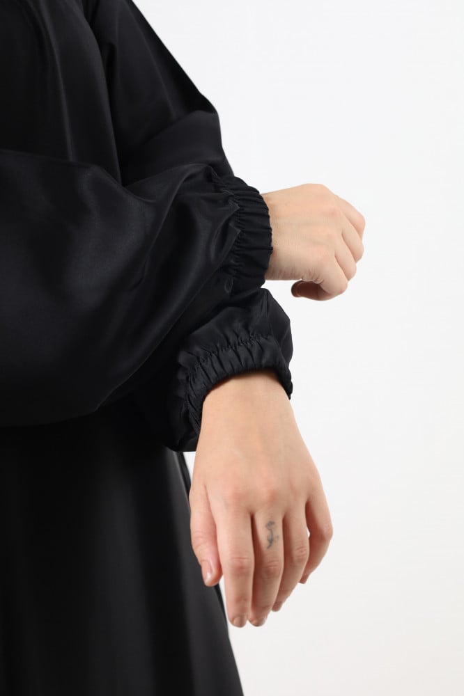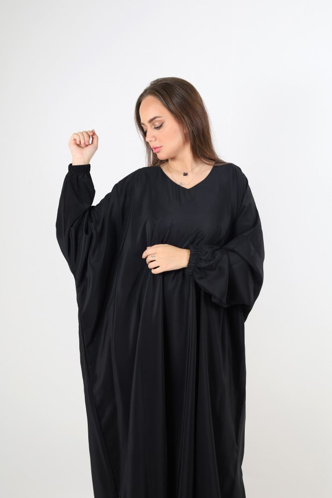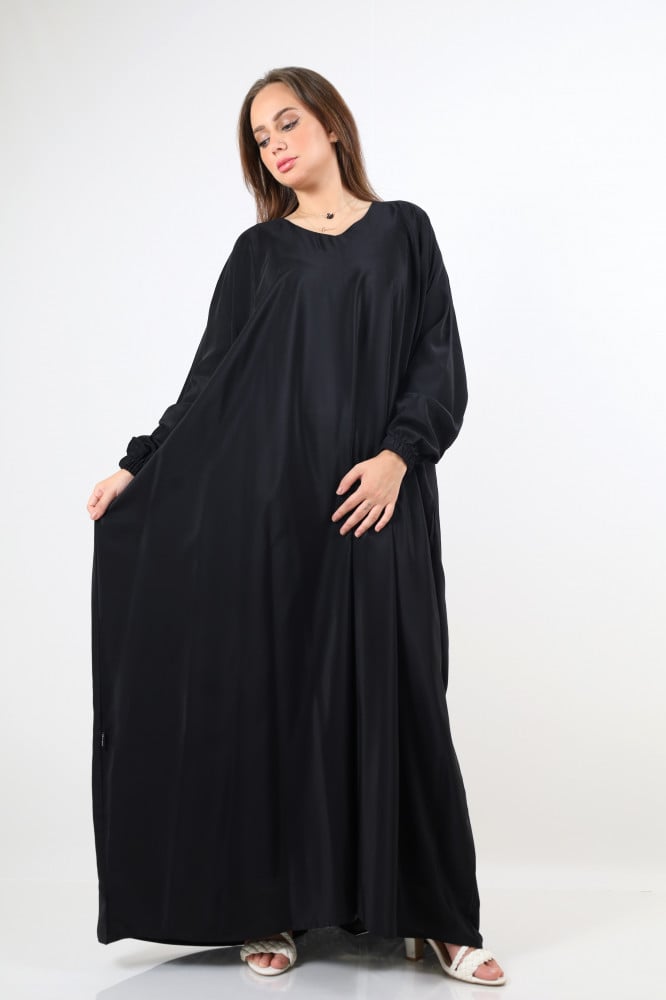 عباية سادة خفيفة ومريحة مع تفاصيل زم في الاكمام عملية لاعطائك طلة مميزه خامة زمردة الحرير الياباني