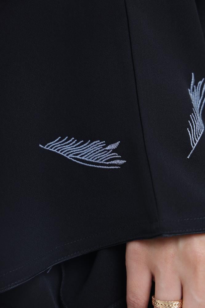 تم تصنيع هذه العباية من القماش عالي الجودة، مما يجعلها مريحة للارتداء طوال اليوم، كما أنها تتميز بالأكمام الطويلة والياقة العالية التي تضفي لمسة من الأناقة على الإطلالة.