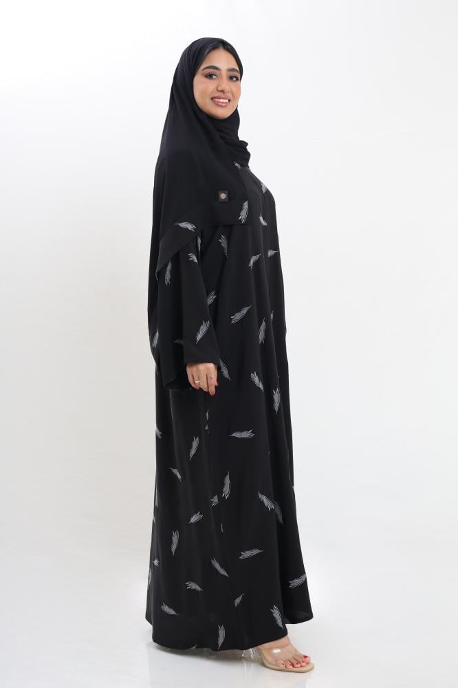 كما تتوفر هذه العباية بعدة مقاسات مختلفة مع طرحة مقاس عرض 28 أنش لتناسب جميع الأشكال والأحجام.