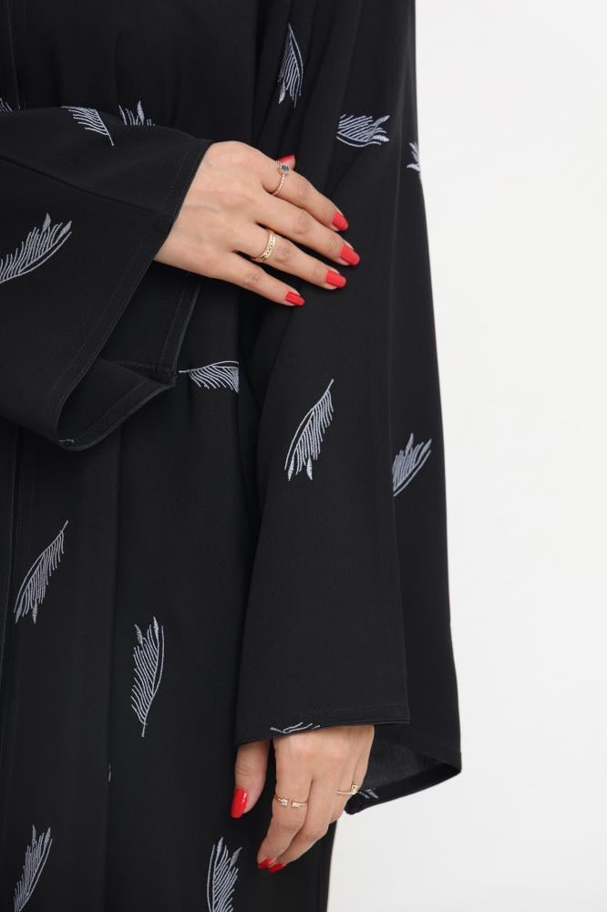 عباية صالونا جميلة عباية فاخرة وأنيقة تتميز بتصميمها الفريد والجميل، حيث تم تصميمها بأسلوب عصري ومعاصر يجمع بين الأناقة والراحة. تتميز هذه العباية بتطريز ورق منثر على العباية، مما يضفي لمسة من الرقي والجمال على الإطلالة.