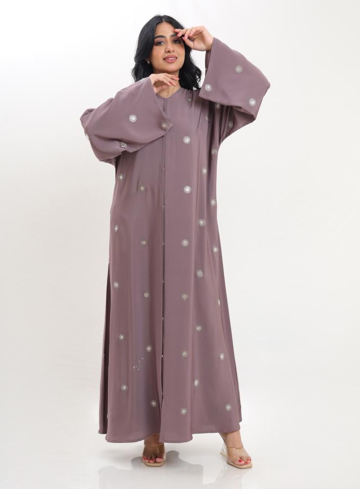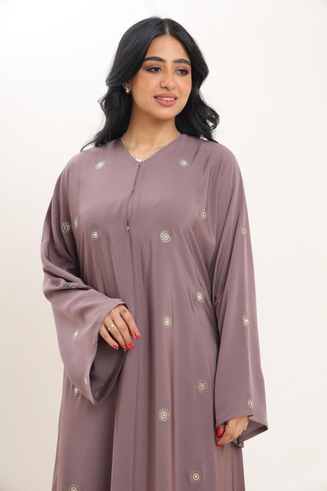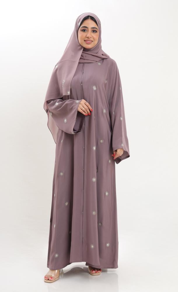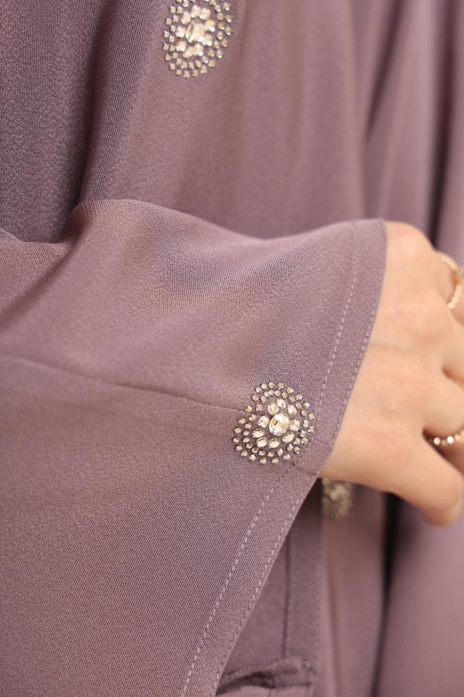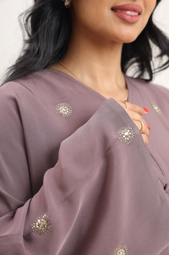 عباية صالونا سوارفسكي موديل جوزال قطعة مميزة وفريدة، تجمع بين الأناقة والفخامة والتألق. تعد الكريستالات المنثرة على شكل دائرة على كامل العباية عنصرًا مبهرًا يجعلك تتألقين في أي مناسبة ترتدينها.