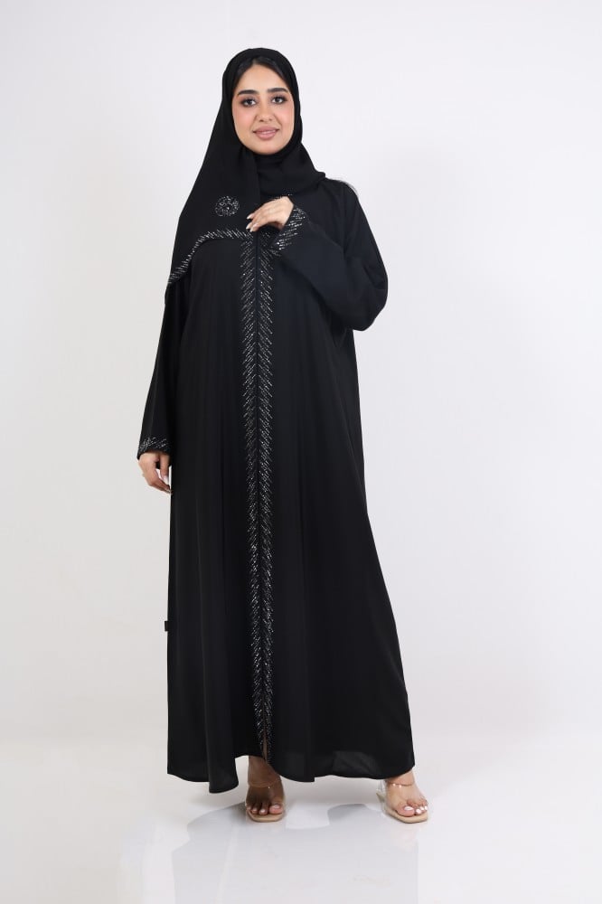 تصمم العباية بقصة فضفاضة وأنيقة، تنسدل بلطف على الجسم وتضفي لمسة من الراحة والحرية في الحركة. تستخدم العباية أقمشة عالية الجودة وتتميز بالتفاصيل الدقيقة الممتازة، مما يجعلها قطعة فاخرة ومثالية للمناسبات الخاصة والأحداث الرسمية.