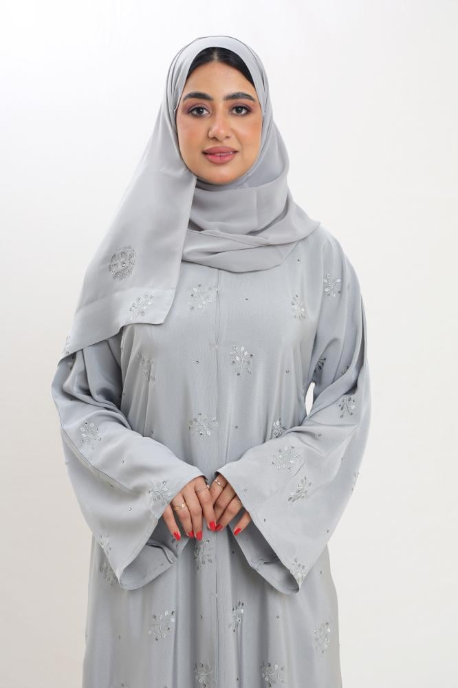 عباية صالونا كرستال موديل رولا قطعة ملابس فاخرة ومميزة. تتميز هذه العباية بتطريز ماكينة كرستال سوارفسكي الرائع، مما يضفي لمسة من الفخامة والتألق على التصميم.