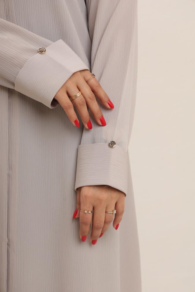 Renda abaya is made from crepe, a lightweight and draping fabric that offers an elegant appearance and comfort on the body. Crepe fabric is known for its breathability and moisture-wicking properties, making the abaya suitable for both formal and daily wear occasions.