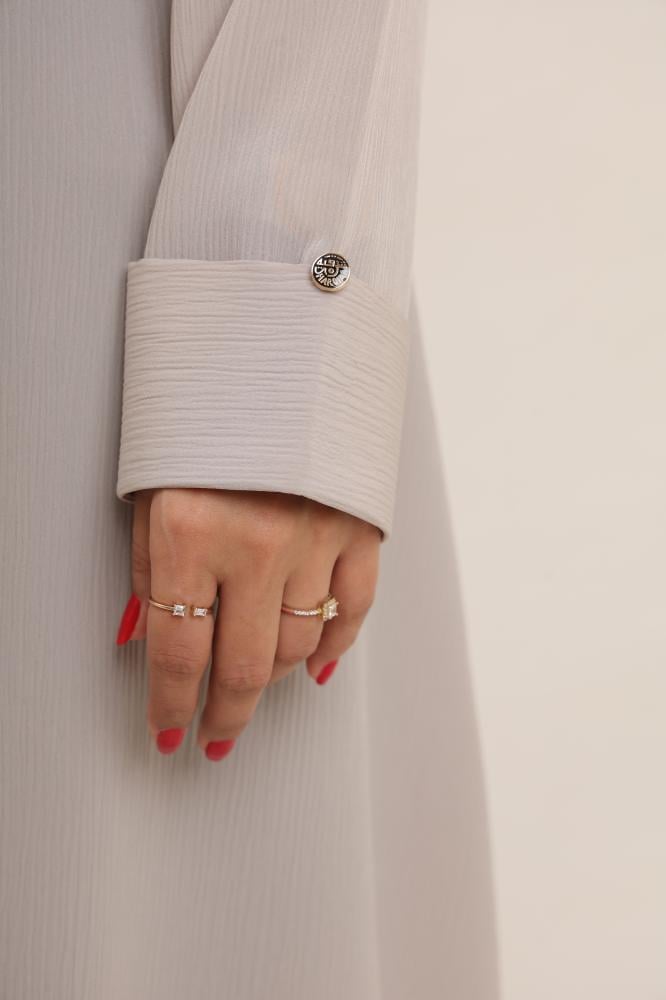 crepe Swarovski abaya comes in Renda model with raffles on its back; it is a beautiful and luxurious piece that combines elegance and uniqueness. The design of this abaya is inspired by crepe a type of lightweight and draping fabric. It comes with raffles design on the sleeves, creating vertical folds on the sleeves to add an artistic and distinctive touch of modernity and beauty. Also, the raffles design helps to conceal flaws and highlight the elegance of the piece.
