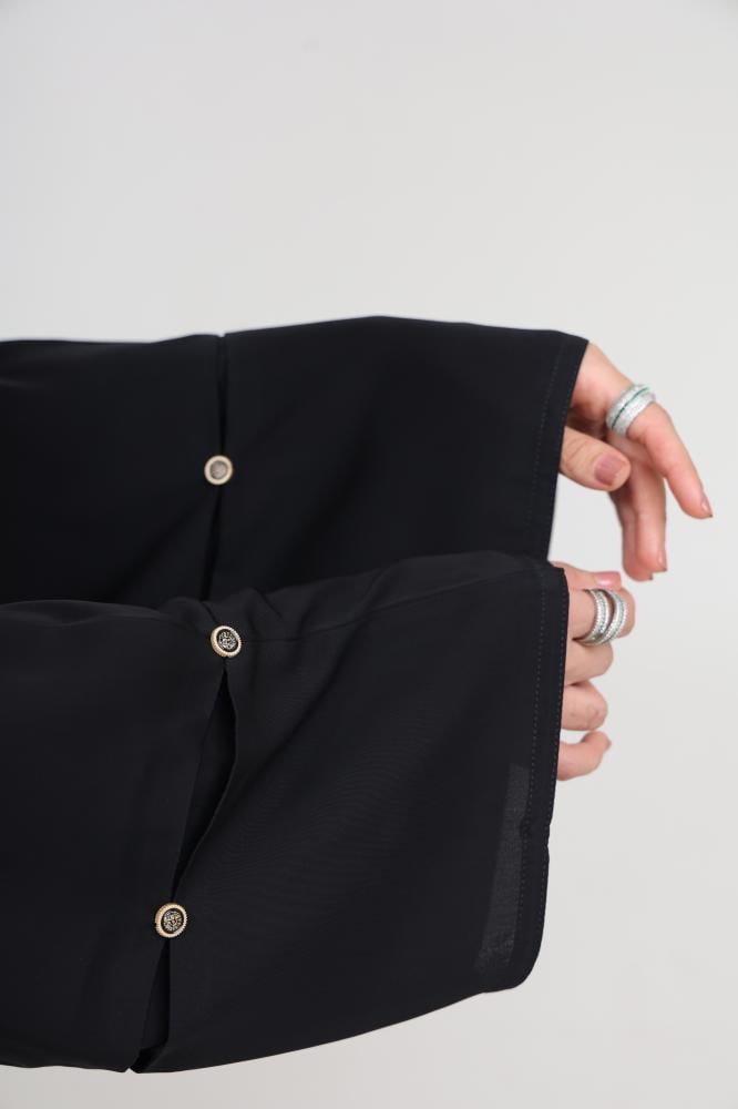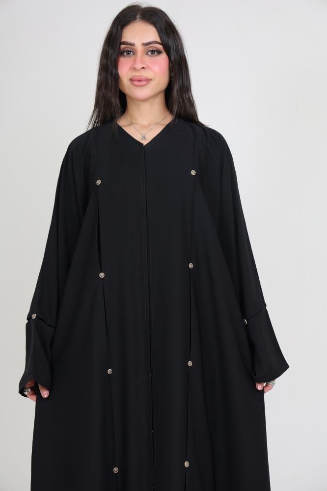 Asaf abaya features elegant ruffle details on both the front and back, adding a touch of authenticity and beauty to the piece. These ruffles bring movement and grace to the design making it a standout garment while wearing.