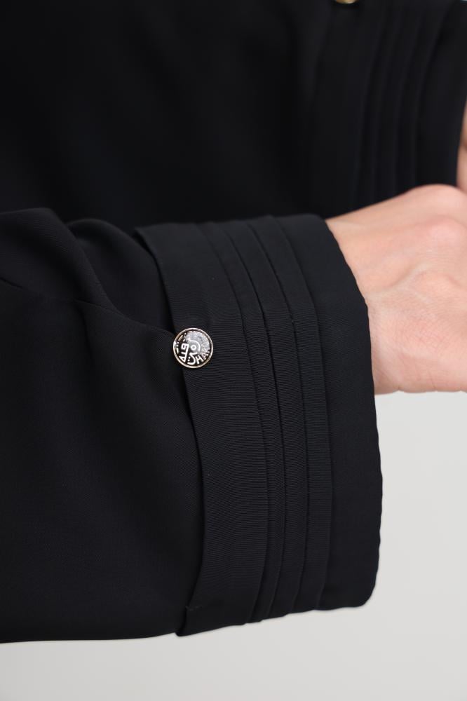 This Fursan ruffled fabric abaya comes in Khetam model. It is distinguished by its unique elegance and refined details that blend tradition and modernity. It is a luxurious piece that highlights the beauty of the contemporary woman, adding a touch of sophistication and style.